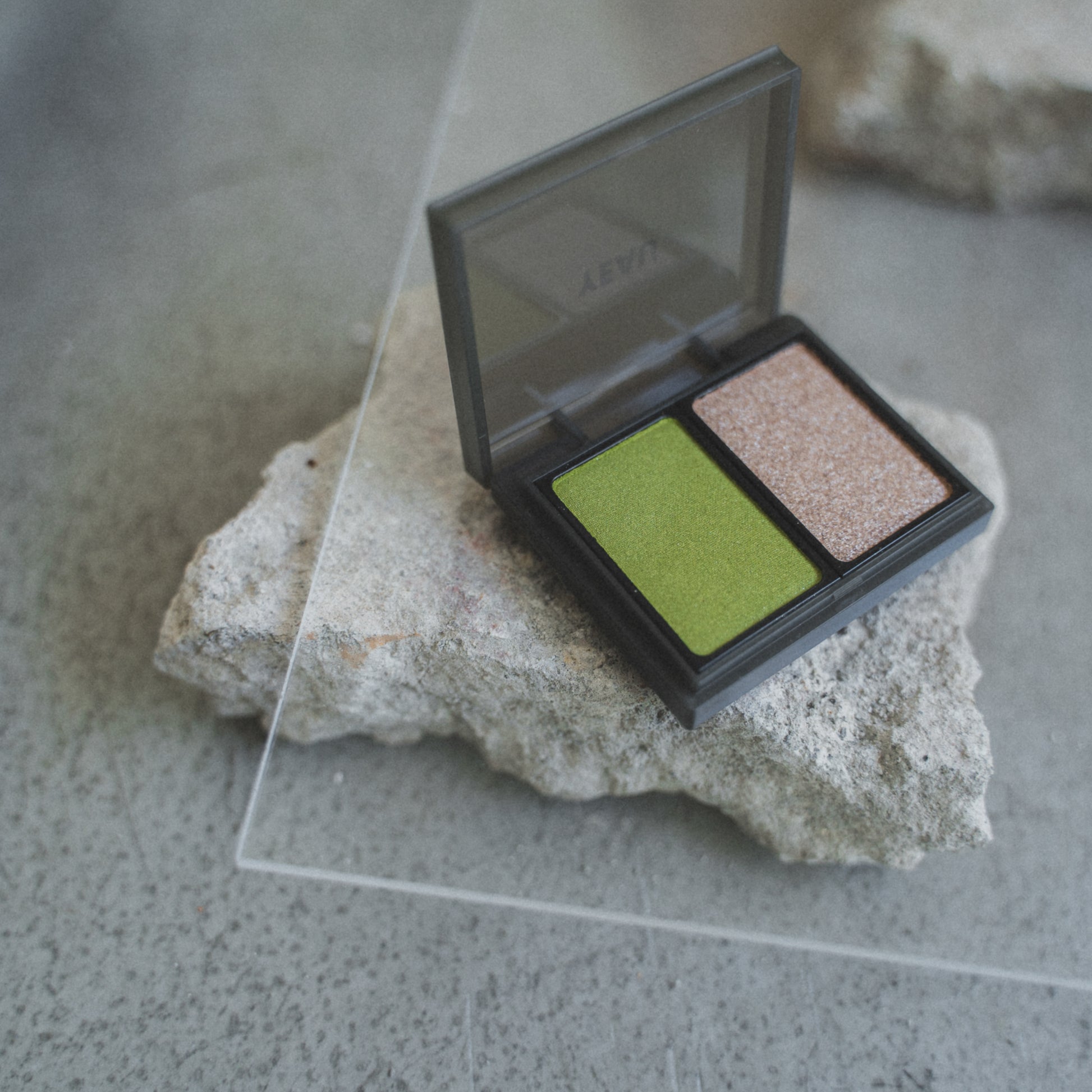 相性の良いgreenとsilverの2色パレットは単色使いでも映える。